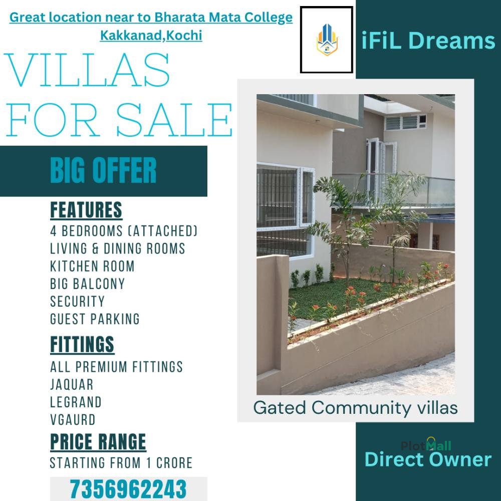 A gated community premium villas for sale near BMC Kakkanad, Info Park, Naipunya School, VidhyaJyothi School, Sunrise Hospital etc